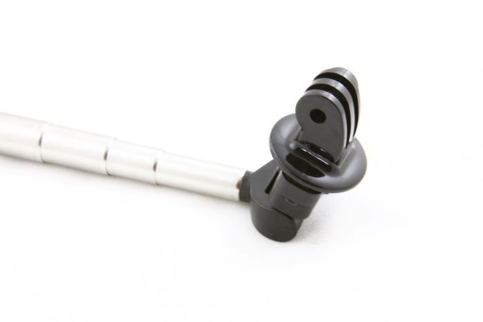 Adapter posiada metalową końcówkę, w którą można wkręcać standardowe śruby od systemu mocowań dedykowanego do kamer GoPro.