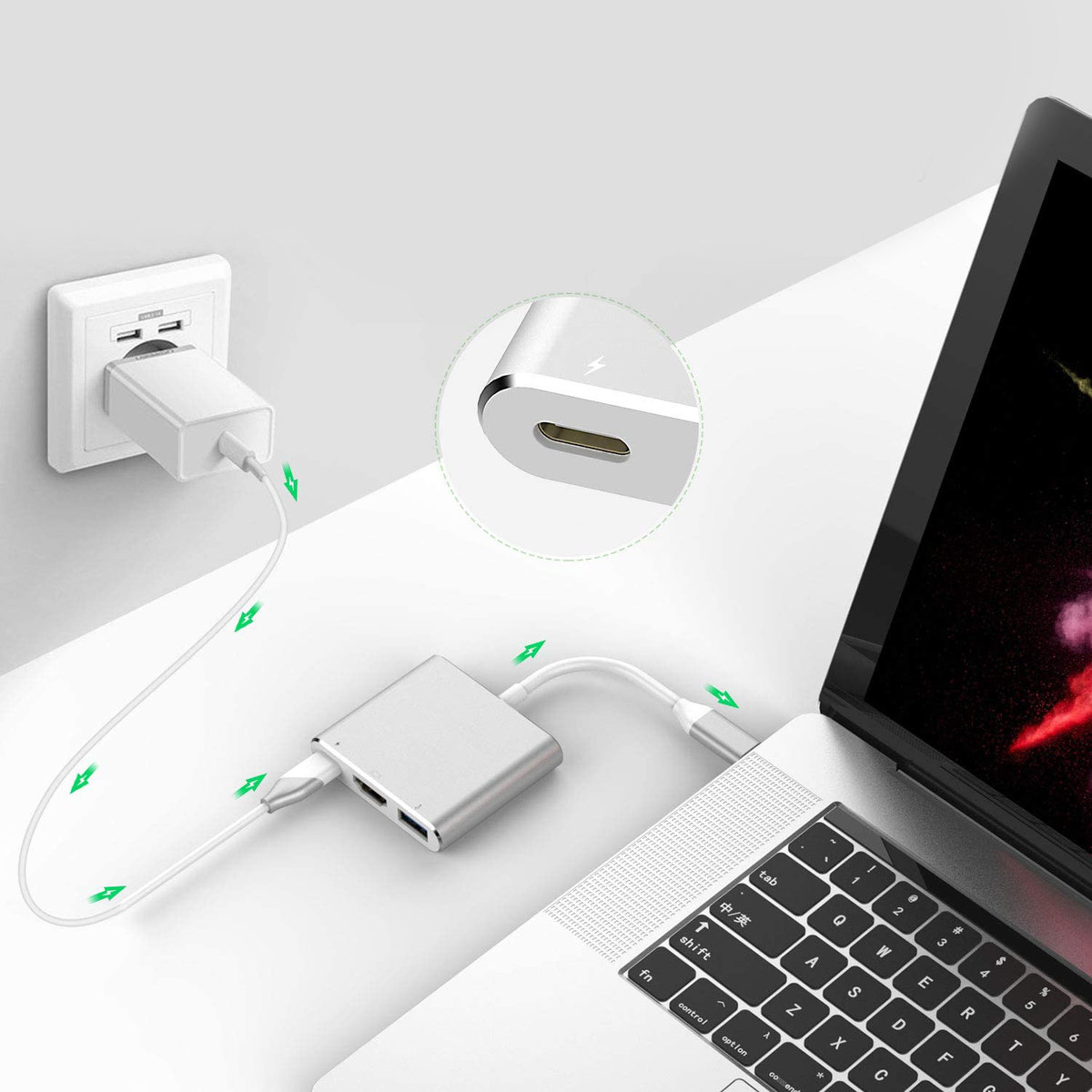 Pozwala w bardzo szybki i prosty sposób podłączyć MacBook, Chromebook, Laptopa tablet lub komputer do zewnętrznego monitora, telewizora lub projektora z wejściem HDMI i jednocześnie podłączyć do laptopa lub komputera inne urządzenia przez porty USB i typ C.