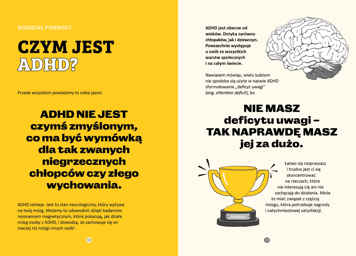 Inni już dawno skończyli pisać rozprawkę na jutro, a ty dalej nie możesz się do niej zabrać? Twoi znajomi wkurzają się na ciebie, bo zawsze im przerywasz? Ciągle słyszysz: „Skup się!”, „Znowu zapomniałeś?”, „Zdolny, ale leniwy”? Czujesz, że nikt cię nie rozumie: nauczyciele, rodzice, a nawet przyjaciele?