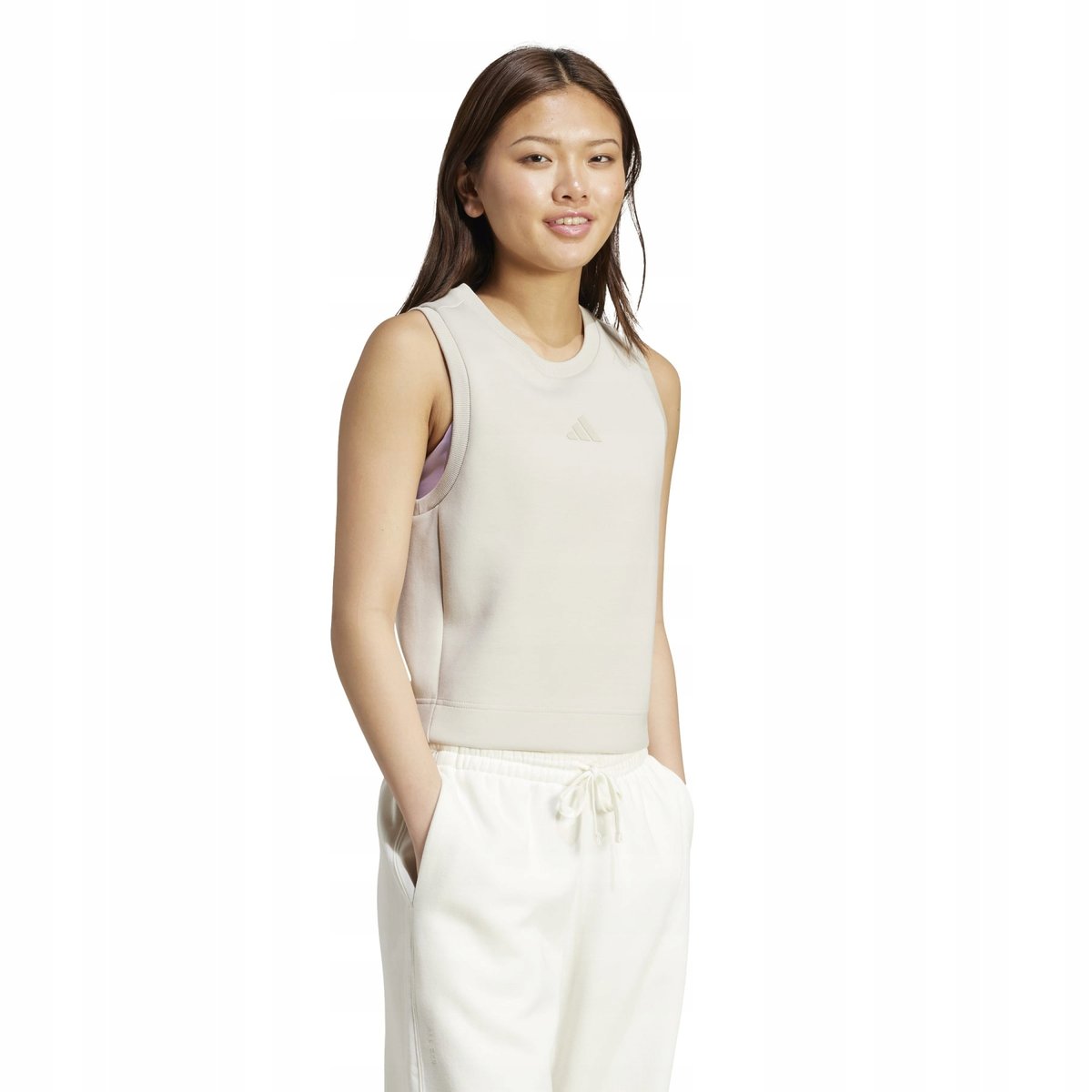 Tank top All Szn marki adidas to propozycja, która łączy styl, komfort i funkcjonalność w codziennym wydaniu. Miękki, elastyczny materiał dystansowy z dodatkiem modalu otula ciało aksamitną gładkością, zapewniając wygodę przez cały dzień — niezależnie od tego, czy wychodzisz na kawę, czy relaksujesz się w domu. Dopasowany krój podkreśla sylwetkę, a nadrukowane w wysokiej rozdzielczości logo z 3 paskami dodaje sportowego charakteru. Dodatkowo tkanina z ochroną UV UPF 50+ zapewnia skuteczne zabezpieczenie przed promieniowaniem słonecznym, czyniąc ten top idealnym wyborem na każdą porę roku.