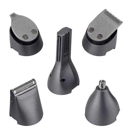 - 6 wymiennych głowic: trymer do nosa, golarka do włosów, maszynka do brody, golarka do ciała, golarka foliowa, precyzyjny trymer