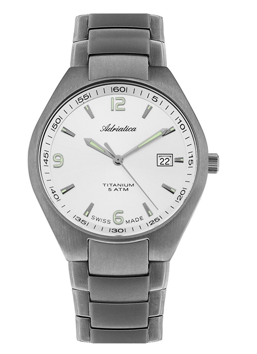 wodoszczelność: 5ATM-50m mechanizm: kwarcowy rodzaj koperty: tytan kształt koperty: okrągły kolor koperty: szary kolor tarczy: srebrny szkiełko: szafirowe pasek: tytan pasek kolor: szary datownik ...