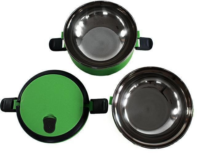 - Wykonany z wysokiej jakości tworzywa na zewnątrz i ze stali nierdzewnej wewnątrz. Materiały użyte do produkcji pojemnika są nietoksyczne, smakowo obojętne i bezpieczne.