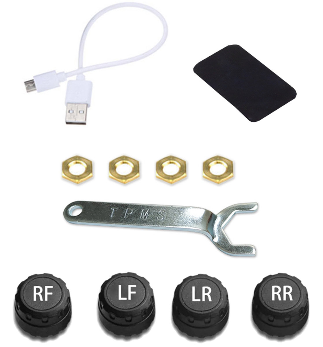 Komplet czujników ciśnienia oraz temperatury w oponach TPMS. Umożliwia bieżące monitorowanie wskazań w poszczególnej oponie. Łatwy montaż oraz zasilanie czujnika z panelu solarnego. Zestaw czujników wysyła informacje do panelu kontrolnego w ciągu 3 sekund od gwałtownej zmiany ciśnienia lub temperatury (bądź 3 minut przy stopniowych wahaniach). Czytelny wyświetlacz LCD umożliwia łatwe przejrzenie odczytów. W przypadku niedostatecznego oświetlenia czujnik można zasilić kablem micro-USB.