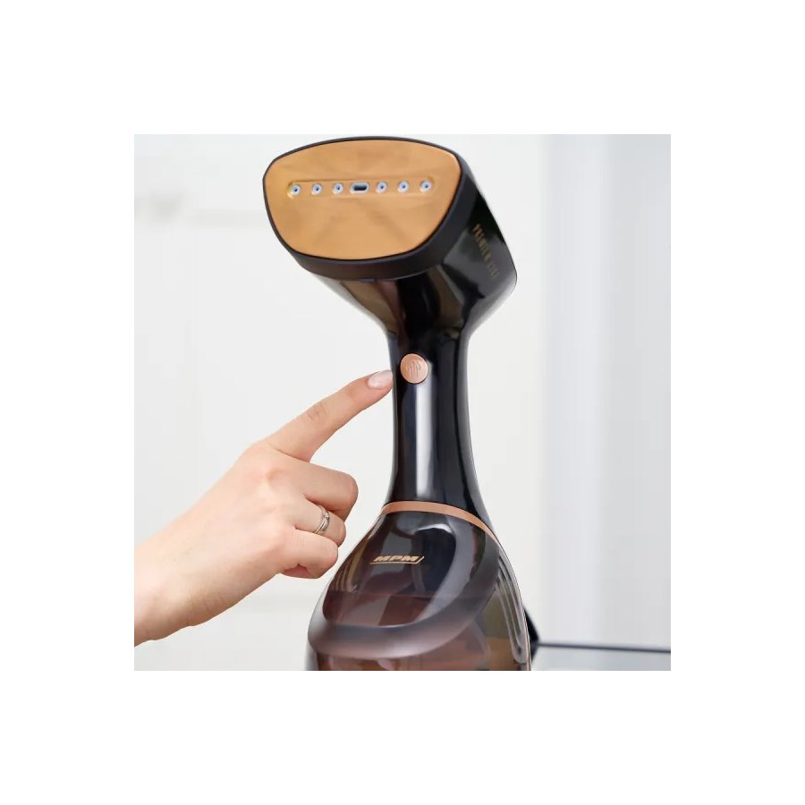 Cenisz sobie wygodę użytkowania sprzętów domowych? W parownicy MZP-03 wyrzut pary uruchomisz elektrycznym przyciskiem. Automatyczny, ciągły strumień pary aż do 30 g/min poradzi sobie nawet z najtrudniejszymi zagnieceniami.
