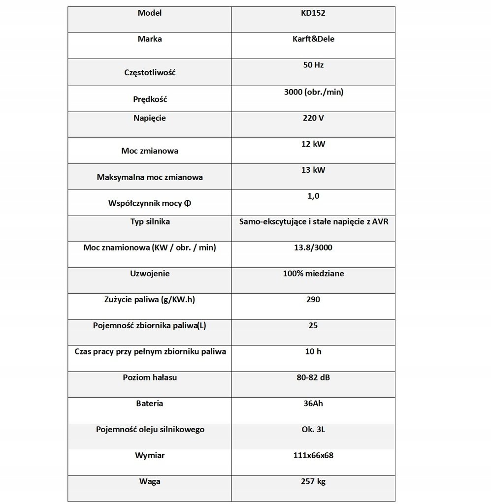 | Nazwa: | Agregat prądotwórczy stacjonarny trójfazowy Kraft&Dele 13000 W olej |