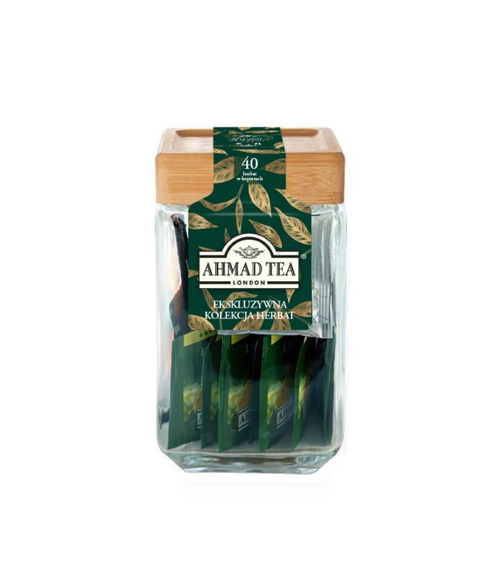Ahmad Tea Słój z herbatą 40x2g Słój zawiera mix herbat producenta Ahmad. W zestawie znajdziemy 8 rodzajów herbat : Green Lemon Vitality Peach & Passion Fruit Green Tea Pure English Tea No.1 ...
