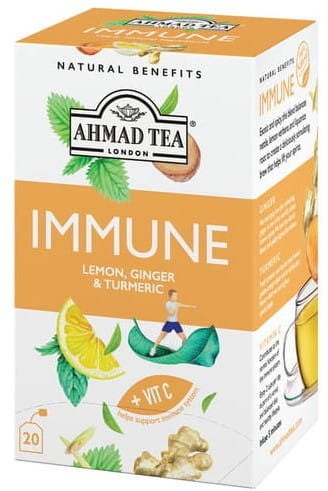 Ahmad Tea Immune Health Benefit napar imbir kurkuma 20 torebek aluminiowych PRODUKT NATURALNY, WYSOKIEJ JAKOŚCI Napar immunologiczny pomaga utrzymać się na szczycie dzięki regenerującej ...
