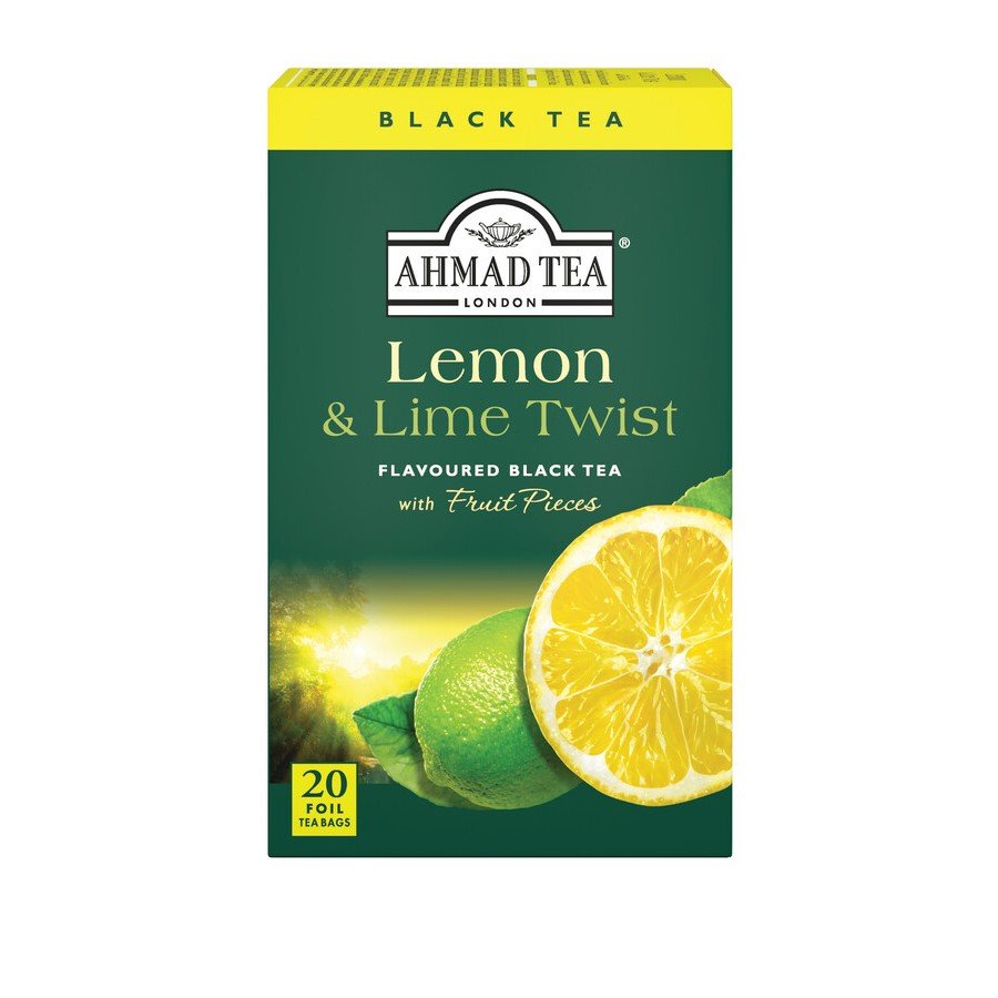 Ahmad Tea Lemon & Lime twist Herbata czarna cytryna i limonka 20 torebek aluminiowych PRODUKT NATURALNY, WYSOKIEJ JAKOŚCI Mieszanka Lemon & Lime Twist to energetyzujący napar idealny do picia