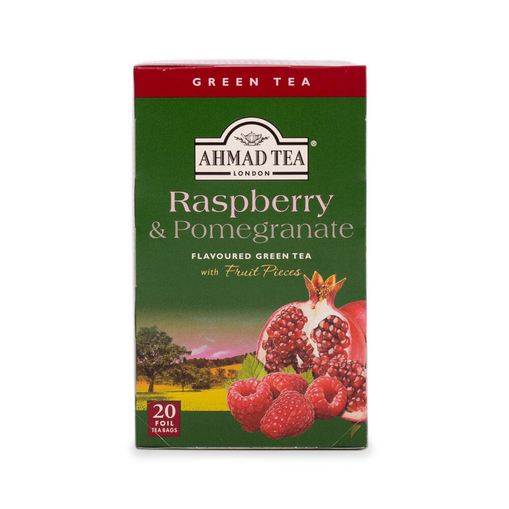 Ahmad Tea Raspberry Pomegranate Green Tea Herbata zielona malina z granatem 20 torebek aluminiowych PRODUKT NATURALNY, WYSOKIEJ JAKOŚCI Szukasz pysznie owocowego naparu? Zielona herbata ...