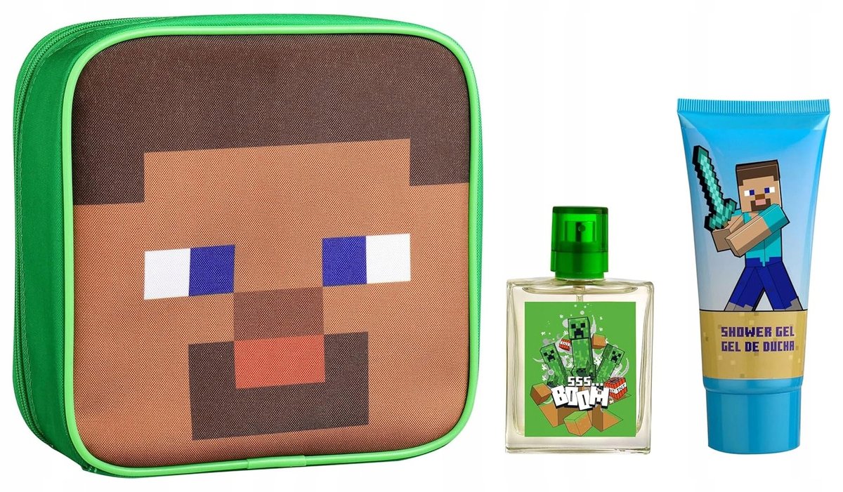 Minecraft - Zestaw prezentowy marki Air-Val. Został stworzony specjalnie dla wszystkich gamerów oraz fanów kultowej, komputerowej gry survivalowej, jaką jest Minecraft. Będzie idealny jako prezent na urodziny oraz wiele innych specjalnych okazji zarówno dla dzieci jak i nastolatków, bez względu na płeć. W swoim składzie zawiera wodę toaletową w szklanej buteleczce o pojemności 50 ml, a także żel pod prysznic w tubce o pojemności 100 ml. Oba produkty idealnie sprawdzą się idealnie w podróży i na co dzień. Cały zestaw został umieszczony w klimatycznej kosmetyczce, która idealnie sprawdzi się w podróży oraz w zaciszu domowym do przechowywania kosmetyków i innych przedmiotów.