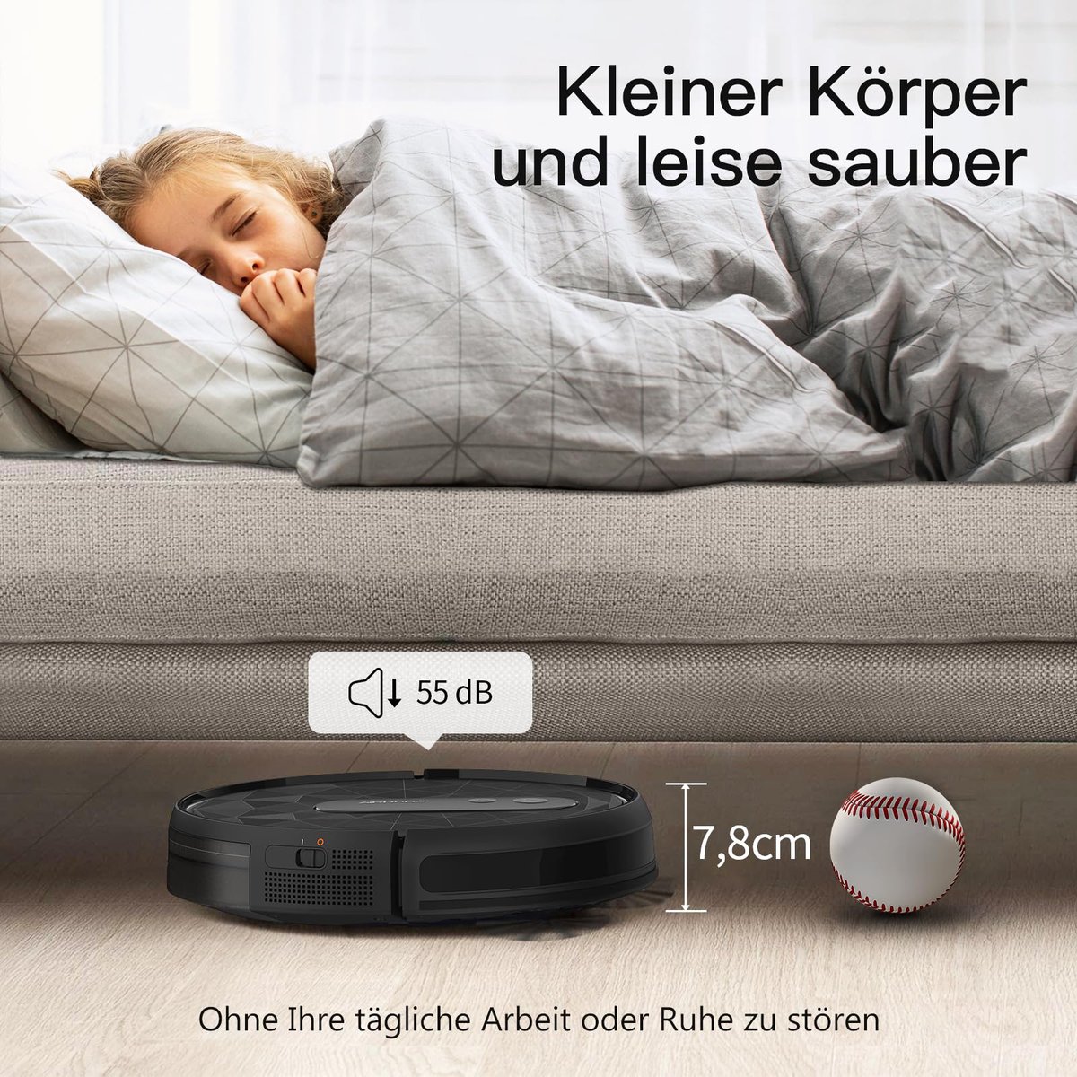 Dzięki czasowi pracy wynoszącemu 120 minut, odkurzacz jest w stanie posprzątać nawet większe pomieszczenia bez konieczności częstego ładowania. Dodatkowo, jego niska konstrukcja pozwala mu swobodnie poruszać się pod meblami i docierać w trudno dostępne miejsca.