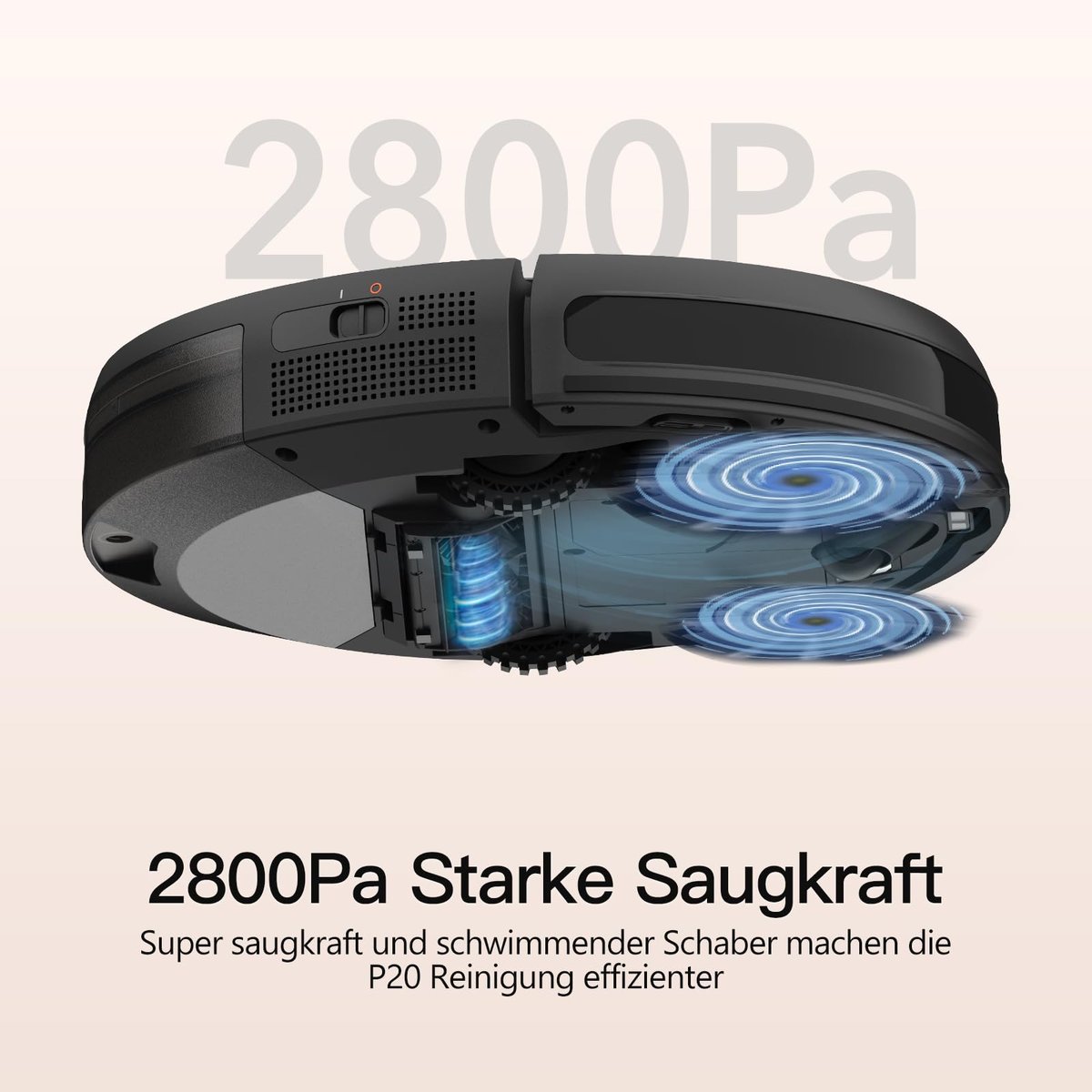 AIRROBO P20 to odkurzacz automatyczny, który wyróżnia się niezwykle silną siłą ssania wynoszącą aż 2800 Pa. Dzięki temu jest w stanie skutecznie usuwać nawet najbardziej uporczywe zabrudzenia z dywanów, podłóg twardych oraz sierści zwierząt.