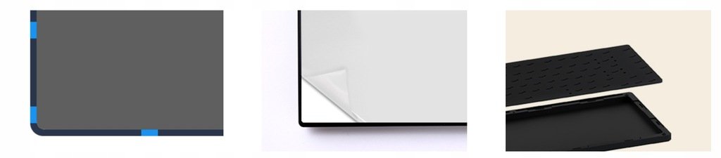 Dołączone jest wiele opcjonalnych pianek tłumiących - jedna do montażu pod PCB (tzw. case foam) oraz jedna do montażu między PCB a plate (tzw. plate foam). Wypełniają one puste przestrzenie, redukując pogłos, co pozytywnie przekłada się na brzmienie. Dodatkowo w zestawie znajduje się tzw. switch pad, czyli opcjonalna pianka do umieszczenia na PCB pod przełącznikiem. Oferuje ona unikalne brzmienie, które posiada wiele fanów. Switch pad jest w jednym kawałku, co zdecydowanie ułatwia montaż. Dołączona jest także pianka do naklejenia na spód wewnętrznej części obudowy, aby zapobiec przypadkowym zwarciom.