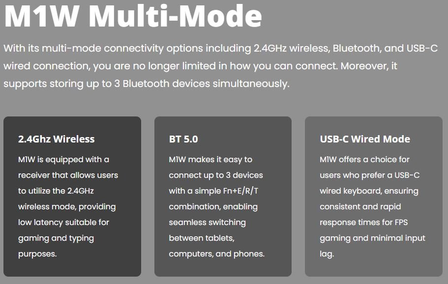 MonsGeek M1 Wireless daje nam do wyboru aż 3 rodzaje połączeń, z których możemy korzystać.