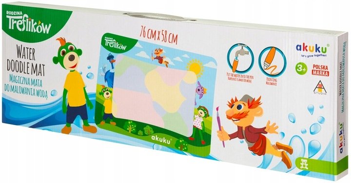 Właśnie zrecenzowałem Mata wodna MAGICZNA TREFLIKOWA AKUKU A0638 - 76x58 cm zabawka edukacyjna dla dzieci malowanie bez brudzenia z mazakiem szablonem i książeczką
