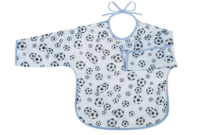 Śliniak z rękawkami wykonany jest z 100% bawełny jersey. Podszycie śliniaka to miękka nieprzemakalna ceratka, która zabezpiecza ubranie przed zabrudzeniem.
