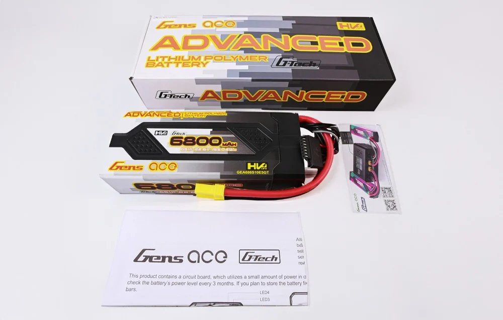 Gens Ace G-Tech Advanced to zaawansowany model akumulatora, zaprojektowany z myślą o najwyższej wydajności i bezpieczeństwie użytkowania. Dzięki pojemności 6800mAh i wysokiemu napięciu 22.8V akumulator jest idealny dla wymagających modeli RC, takich jak samochody w skali 1/7, w tym modele takie jak FELONY 6S BLX, LIMITLESS czy INFRACTION 6S BLX. Oferuje ekstremalnie wysoki współczynnik rozładowania 100C, co zapewnia potężny przypływ mocy w krótkim czasie. Akumulator jest wyposażony trwałą obudowę typu HardCase, wewnętrzne obwody, wskaźnik mocy LED oraz wskaźnik statusu napięcia, co znacznie ułatwia zarządzanie energią. Dodatkowe funkcje, takie jak samoczynny tryb przechowywania, zabezpieczenie przed przeładowaniem i gruby 8-gauge przewód, podnoszą poziom bezpieczeństwa i wygody użytkowania. Złącze balansujące JST-XHR oraz złącze rozładowania EC5 zapewniają solidne i niezawodne połączenia.