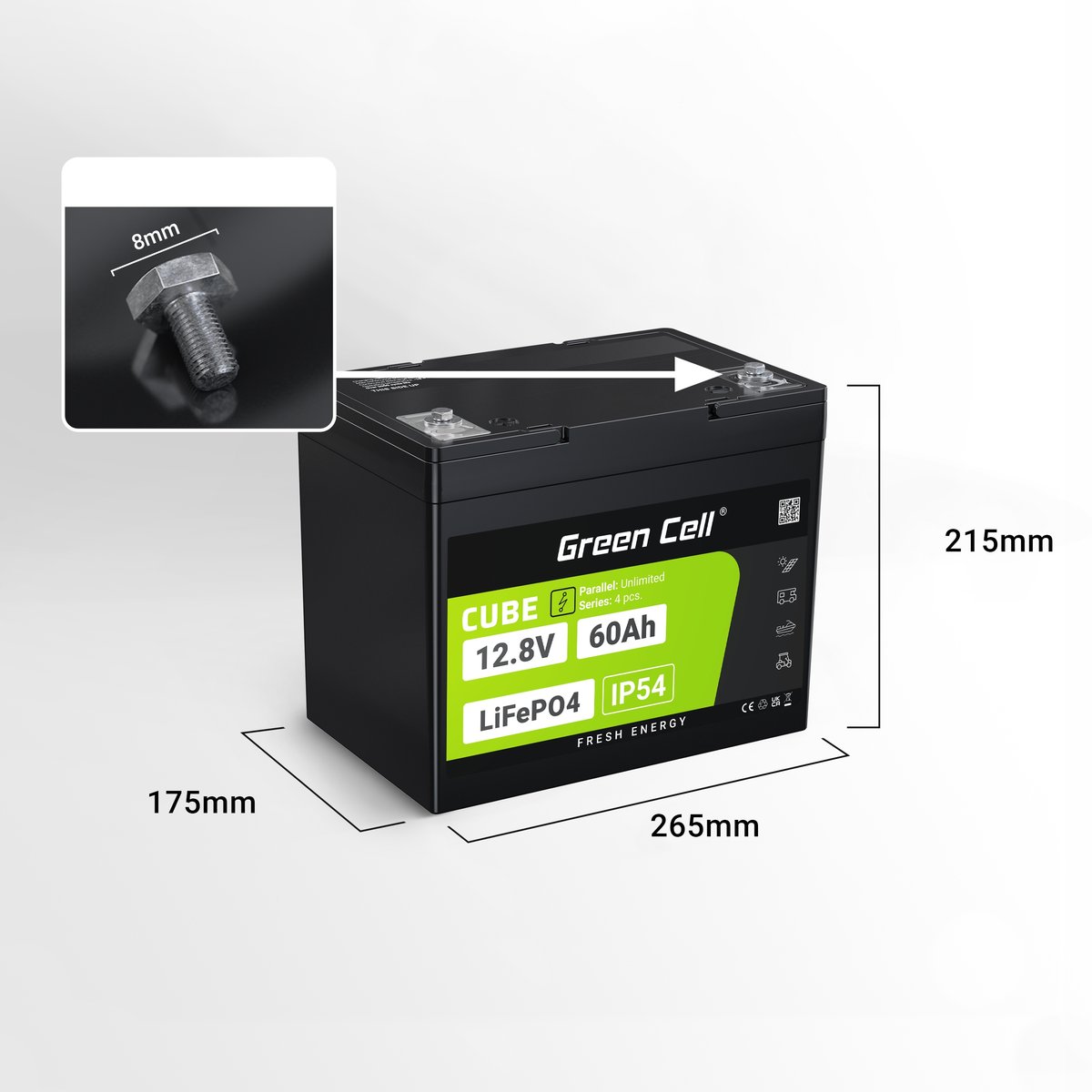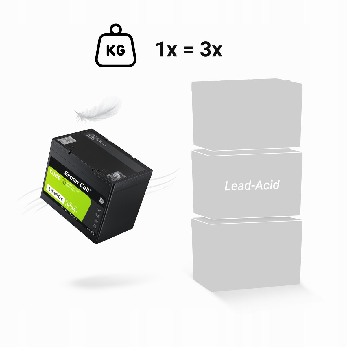 ✅ Lżejsza waga — Nawet 3x lżejszy od akumulatorów ołowiowych o tej samej pojemności. LiFePO4 12,8 V od Green Cell to bezpieczne i stabilne źródło energii. Zapewnia prąd ciągłego rozładowania 1C i wyższą moc ładowania. Przystosowany do pracy cyklicznej.
