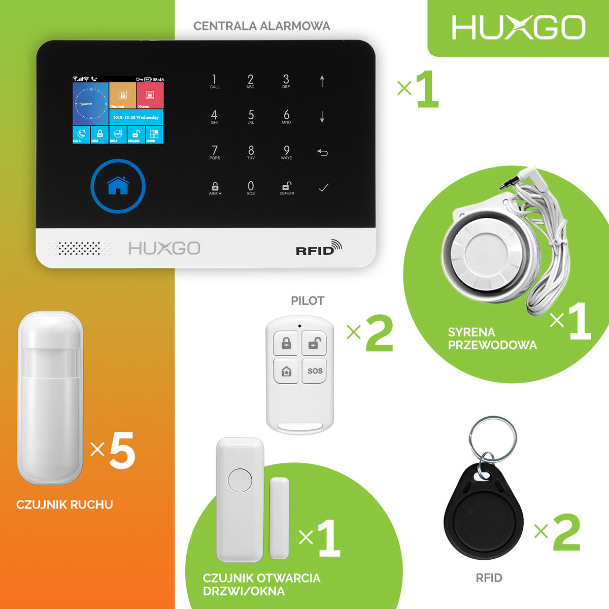 System alarmowy HUXGO HXA003 możesz rozbudować o dodatkowe elementy, które pozwolą Ci odpowiednio zabezpieczyć Twój dom przed włamaniem, zalaniem, pożarem i wyciekiem gazu. Na naszych pozostałych aukcjach znajdziesz: czujnik zalania, kontaktrony - czujniki magnetyczne na drzwi i okna, czujniki ruchu PIR, czujniki dymu i temperatury (pożarowe), piloty, breloki RFID, syreny bezprzewodowe oraz czujniki ruchu odporne na zwierzęta.