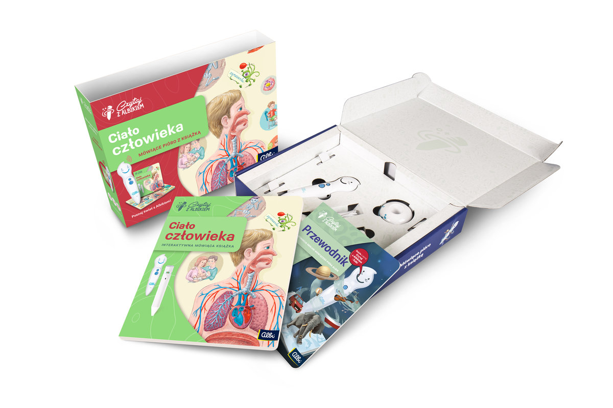 Albik zestaw Ciało człowieka - Specjalna technologia odczytuje zakodowane w książkach treści. Dzięki niej możesz z wybranej książki dowiedzieć się wielu ciekawych informacji, posłuchać piosenek, ...