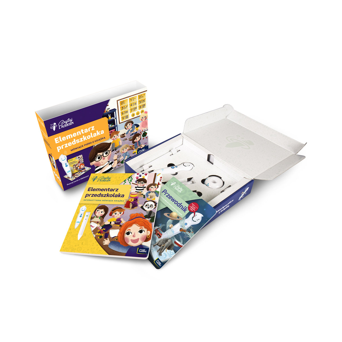 Albik zestaw Elementarz przedszkolaka. Specjalna technologia odczytuje zakodowane w książkach treści. Dzięki niej możesz z wybranej książki dowiedzieć się wielu ciekawych informacji, posłuchać ...