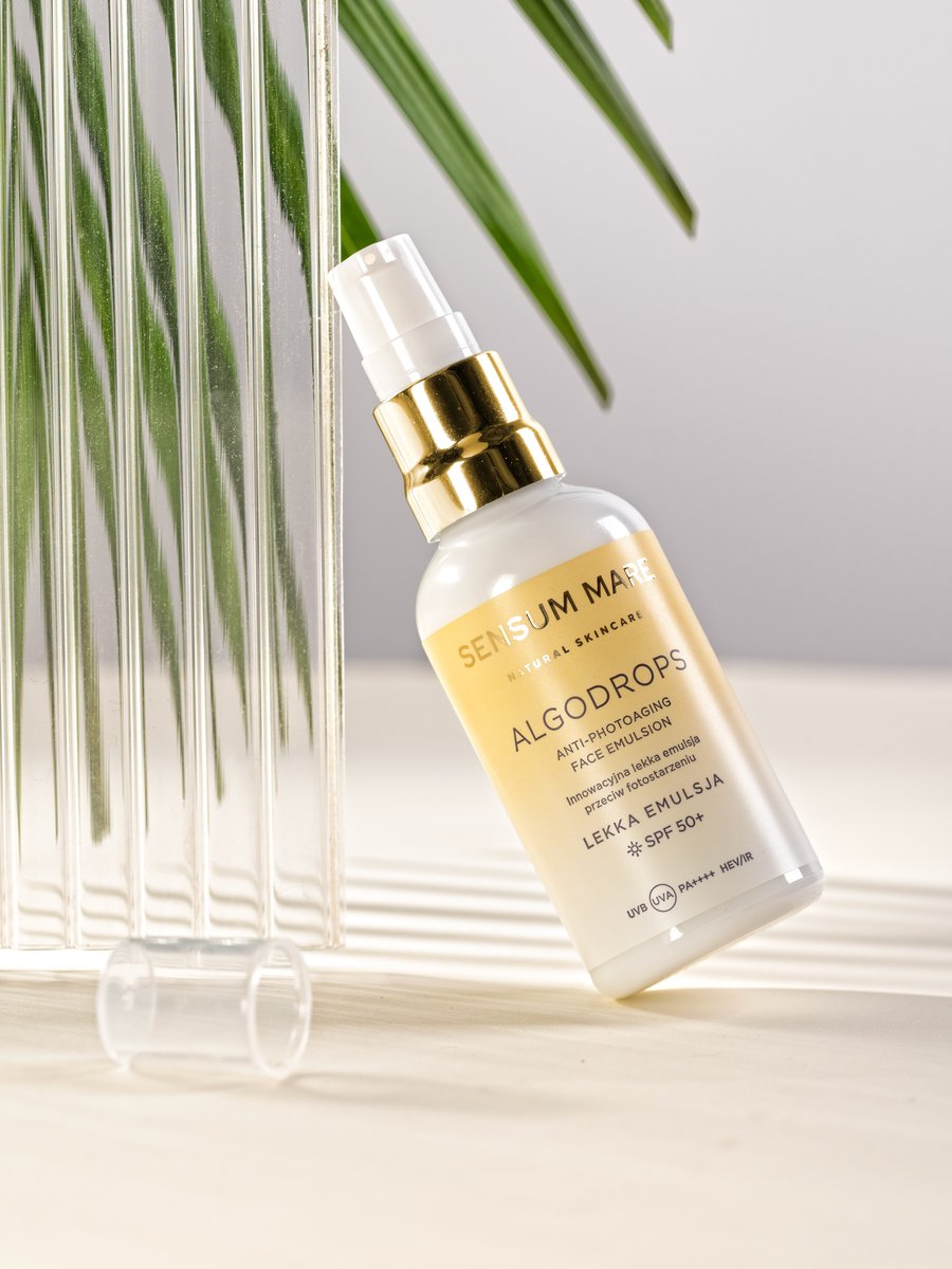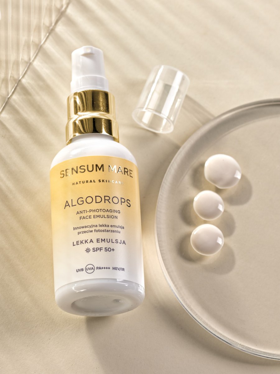 Innowacyjna lekka emulsja ochronna przeciw fotostarzeniu SPF 50+ ALGODROPS