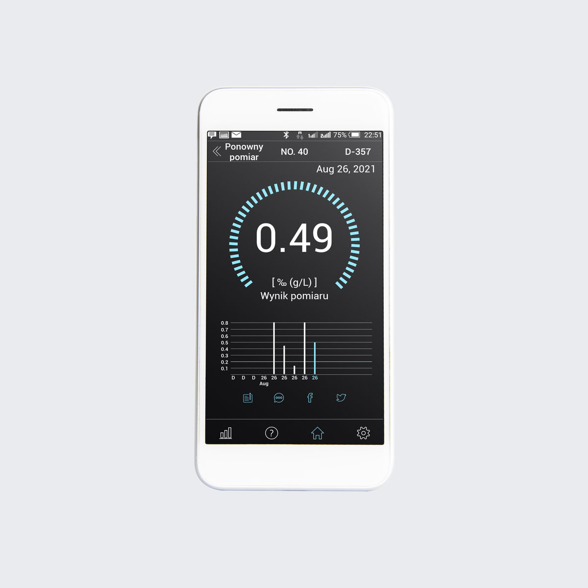 BACscan® Mobile to niezwykłe połączenie elegancji, nowoczesnego designu i zaawansowanej technologii pomiarowej. Alkomat jest zasilany z jednej 1.5V baterii alkalicznej typu AAA, a jego oprogramowanie potrafi zweryfikować stan zasilania oraz prawidłowe działanie sensora. Urządzenie poinformuje nas również w przypadku konieczności wykonania kalibracji. Rozbudowana, darmowa aplikacja umożliwia zmianę jednostek pomiarowych, ustawienie progu alarmowego, wyłączenie sygnalizacji dźwiękowej, aktywację funkcji aparatu oraz wybór jednej z dziewięciu wersji językowych.