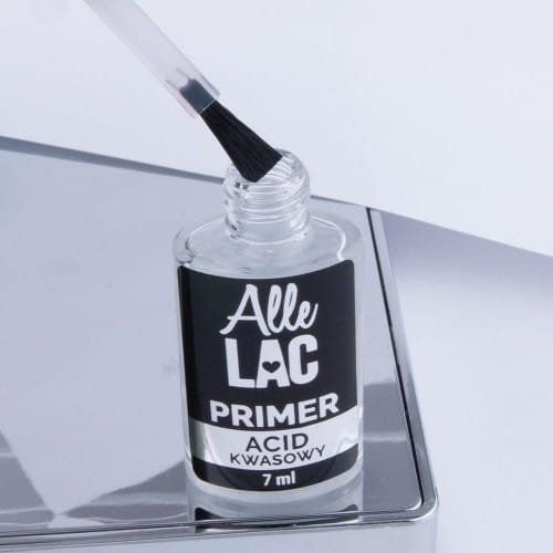 Kwasowy preparat wytrawiający, niezbędny do przygotowania naturalnej płytki przed zastosowaniem lakierów hybrydowych, żeli oraz akryli. Primer kwasowy AlleLac dedykowany jest dla osób z problematyczną płytką paznokcia, u której stylizacja nie utrzymuje się gwarantowanego okresu czasu.