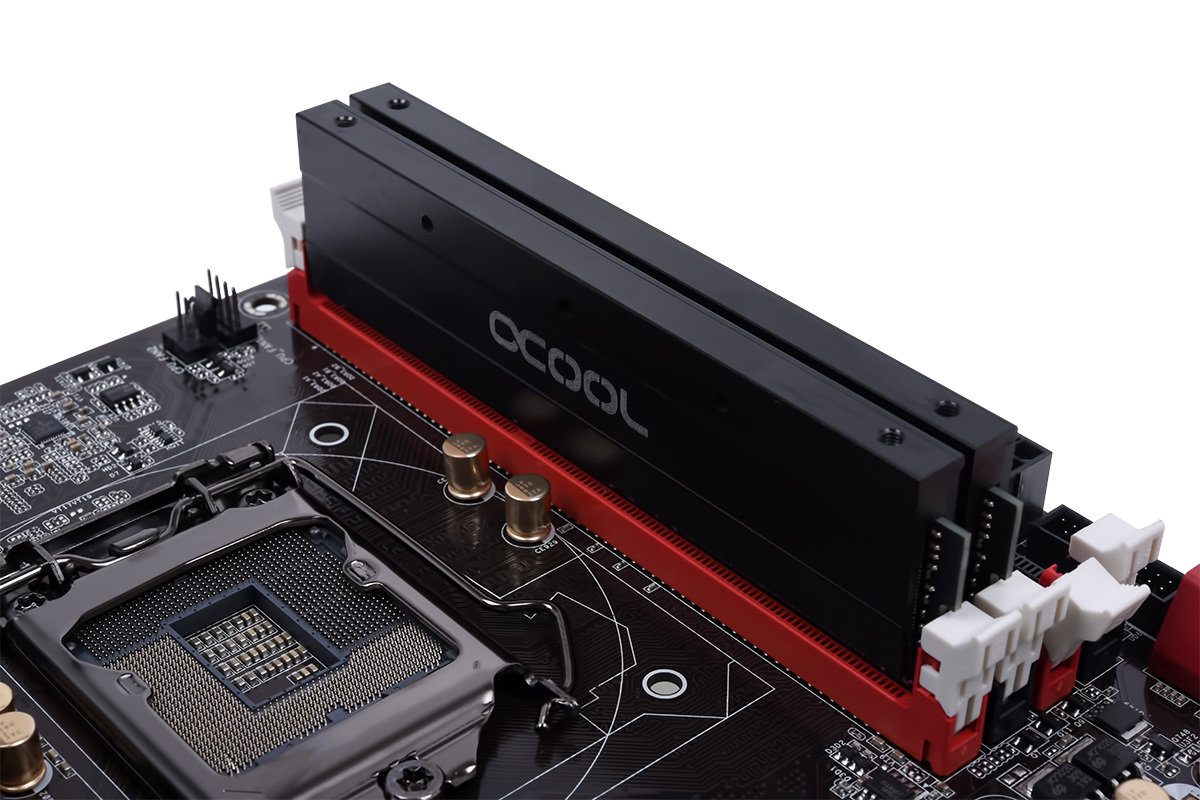 Dzięki adapterom Alphacool D-RAM wszystkie moduły pamięci RAM można teraz łatwo i praktycznie wyposażyć w chłodzenie wodne! Adaptery zaciska się z dwóch stron pamięci RAM za pomocą dołączonych podkładek termoprzewodzących. Dostępne oddzielnie uniwersalne bloki D-RAM po zmontowaniu przykręca się w odstępie wymaganym przez ilość i rozstawienie pamięci w bankach na płycie głównej.