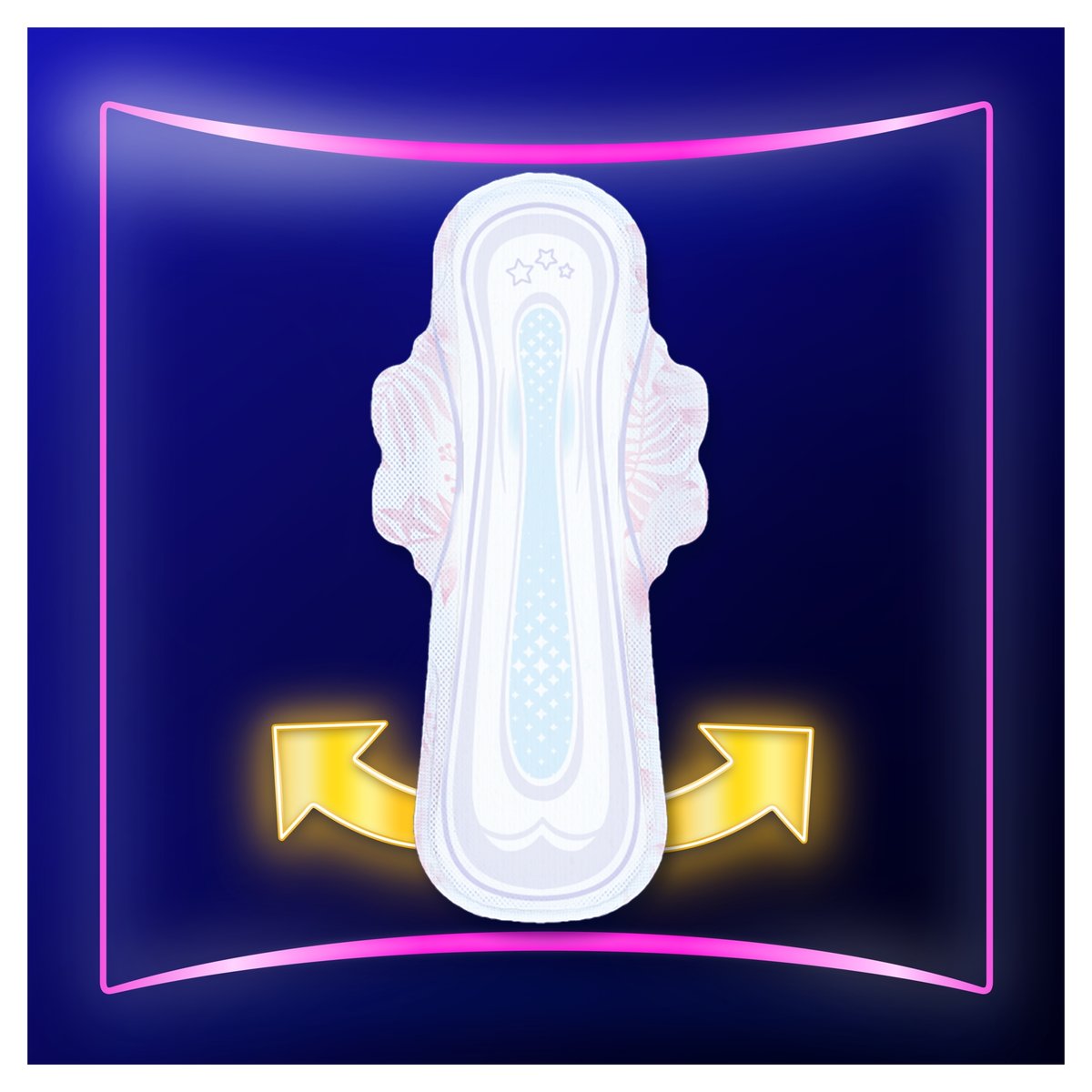 Nie musisz iść na kompromis w kwestii nieprzerwanego snu: podpaski na noc Always Ultimate Night (w rozmiarze 6) ze skrzydełkami zostały zaprojektowane tak, aby oferować maksymalną ochronę, dzięki czemu nie musisz budzić się, aby sprawdzić, czy podpaska przecieka lub by zmienić ją w środku nocy. Nasze najdłuższe i najszersze podpaski z technologią LeakGuard oferują najwyższy poziom chłonności, zapobiegając nocnemu przeciekaniu w trakcie miesiączki. System InstantDry wchłania wilgoć w kilka sekund i utrzymuje ją z dala od Twojej skóry. Podpaski zostały wyposażone w system ComfortFit oraz dodatkowe skrzydełka z tyłu, dzięki którym podpaska pozostaje na miejscu, gdy śpisz, bez względu na zmiany pozycji ciała. Znajdź podpaskę idealnie dopasowaną do Twojego ciała dzięki Always My Fit, systemowi spersonalizowanego dobierania rozmiaru, który pomoże Ci znaleźć najlepsze zabezpieczenie oferowane przez markę Always w czasie okresu, zależnie od intensywności miesiączki i rozmiaru bielizny, jaki nosisz.
