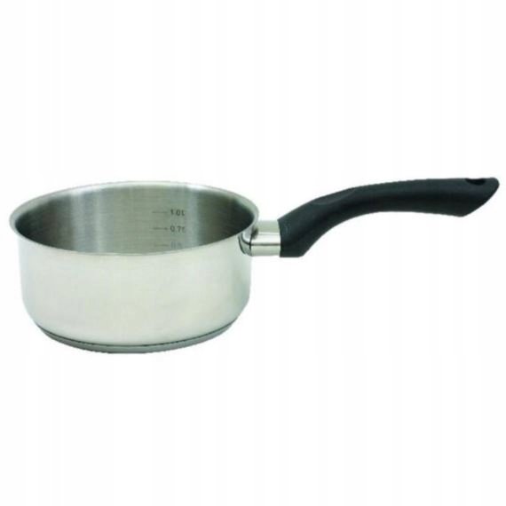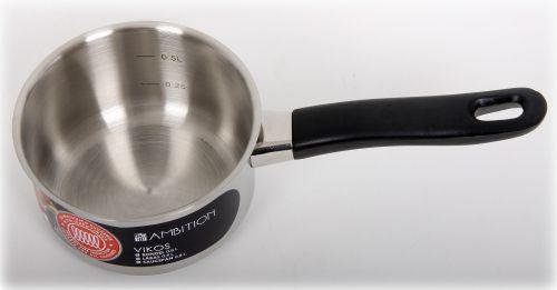 Garnki Vikos - moc prostego designu. Klasyczny charakter garnków Vikos podkreśla prosty kształt ścianek, natomiast zaokrąglony kształt rączek przełamuje ten łagodny design. Garnki dzięki takiemu połączeniu nabierają wyrazistego charakteru. Garnki Vikos wykonane są z wysokiej jakości stali nierdzewnej o grubości ścianek 0,5 mm. Wielowarstwowe dno równomiernie rozprowadza ciepło, dzięki czemu potrawy szybciej się gotują, co przekłada się na mniejsze zużycie energii i większą oszczędność. Dodatkowym atutem jest skala na wewnętrznej stronie ścianki, ułatwiająca odmierzanie (od 0,25 l do 0,5 l). Posiada wygodny, nienagrzewający się uchwyt z czarnego tworzywa.