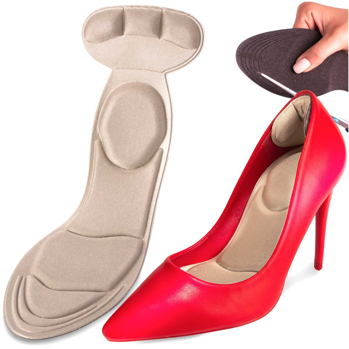 Wkładki te są polecane do butów na wysokim obcasie, zmniejszając dolegliwości związane z długotrwałym chodzeniem w szpilkach. Doskonale sprawdzą się również w innych rodzajach obuwia, takich jak mokasyny czy baleriny.