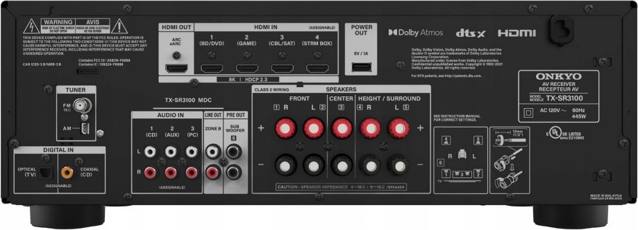 Amplituner ONKYO TX-SR3100 to zupełnie nowy TX-SR3100 zapewnia niezapomniane wieczory filmowe, bardzo potrzebne seanse filmowe, maratony gier i wiele innych atrakcji dzięki najbardziej wciągającej i pożądanej obecnie technologii AV. Ulepsz swój system domowej rozrywki dzięki bogatemu w funkcje amplitunerowi AVR. Korzystaj z bogactwa systemu 5.2 kanałowego amplitunera dedykowanego do kina domowego. Formaty Dolby Atmos i DTS:X umożliwiają inżynierom mapowanie dźwięku w dowolnym miejscu przestrzeni 3D, co oznacza, że efekty mogą przemieszczać się z głośnika do głośnika po całym pomieszczeniu, aby zapewnić widzom wrażenia jak w najnowszych filmach i grach lub ulubionych klasykach.