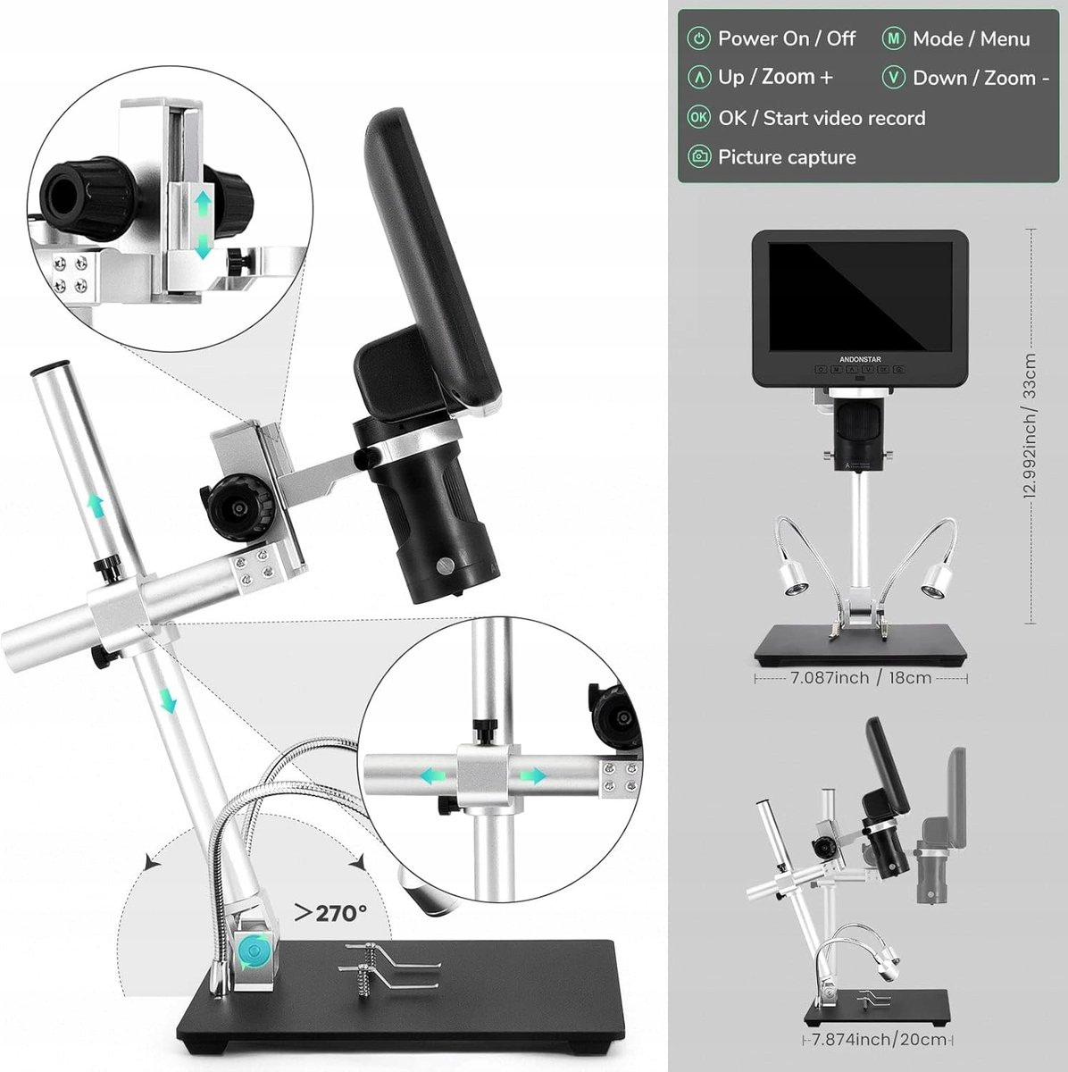 | Nazwa: | Andonstar AD246S-P Mikroskop cyfrowy 7" 18-2040x UHD 2160P USB-C HDMI LED |