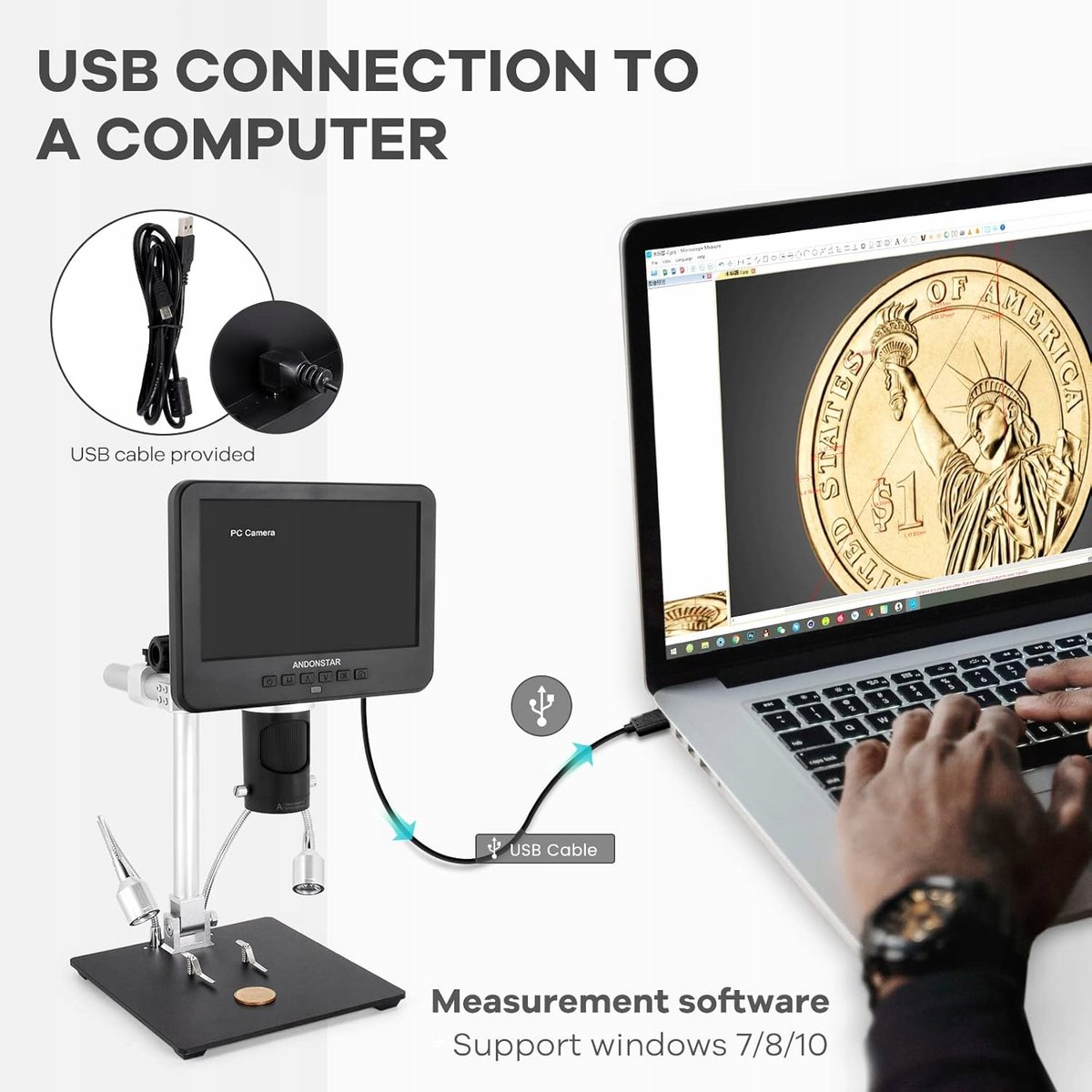 Mikroskop cyfrowy Andonstar AD246S to nowoczesne narzędzie dla pasjonatów nauki, elektroników i kolekcjonerów. Wyposażony w trzy wymienne soczewki, umożliwia powiększenie od 18x do 2040x, co pozwala na wszechstronne zastosowanie – od lutowania i inspekcji płytek PCB po badania biologiczne i analizę monet. 7-calowy ekran LCD UHD 2160P zapewnia wyjątkową jakość obrazu, a opcja podłączenia przez HDMI pozwala na wyświetlanie obrazu na większych ekranach. Solidna metalowa konstrukcja gwarantuje stabilność i wygodę podczas użytkowania.