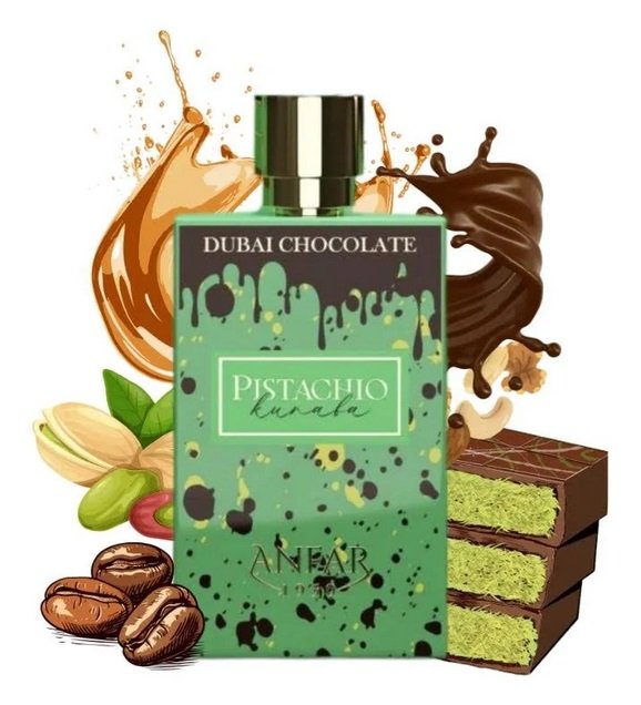 Pistachio Kunafa otwiera się słodkimi i orzechowymi nutami pistacji oraz karmelu, przywołując aromat świeżo przygotowanego deseru. W sercu kompozycji pojawia się ciepło tonki i pikantność kardamonu, nadając zapachowi głębię i wyrafinowanie. Baza zapachu to połączenie aksamitnej czekolady, bursztynu i wanilii z delikatnymi akcentami pudrowymi, tworząc zmysłową i trwałą aurę.