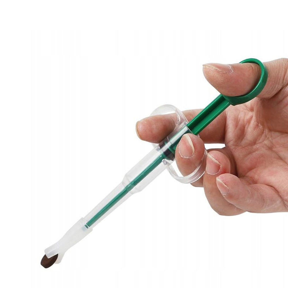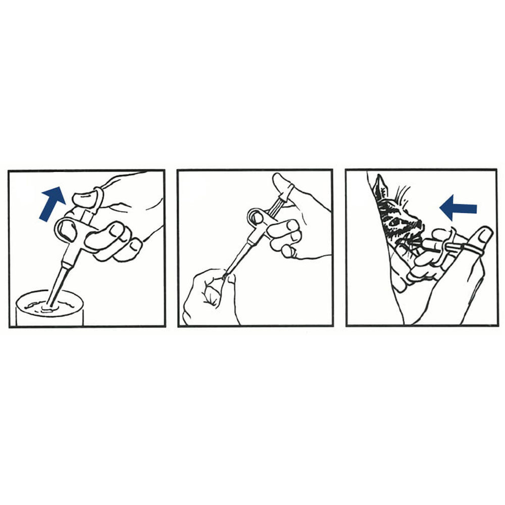 Aplikator tabletek Kruuse jest bardzo prosty w obsłudze. Wystarczy umieścić tabletkę w końcu aplikatora, a następnie wsunąć go do pyska zwierzęcia, delikatnie wciskając tabletkę w głąb gardła. Można to zrobić bezpośrednio lub poprzez dodanie wody do aplikatora, co ułatwi połykanie tabletki przez zwierzę.