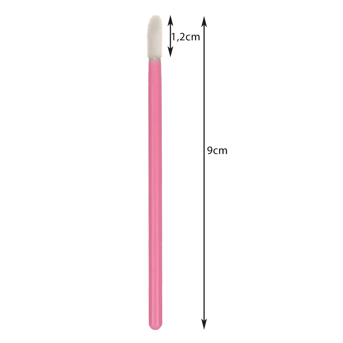 - SPECYFIKACJA – kolor: różowy; ścięta końcówka: ułatwiająca aplikację; średnica końcówki welurowej: 4 mm; długość główki: 1,2 cm; długość całkowita aplikatora: 9 cm; waga w opakowaniu: 40g