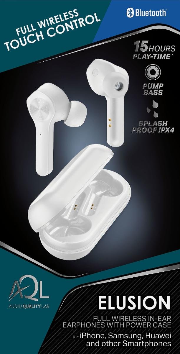 | Nazwa: | AQL Elusion, douszne słuchawki Bluetooth True Wireless z mikrofonem i etui ładującym, białe |