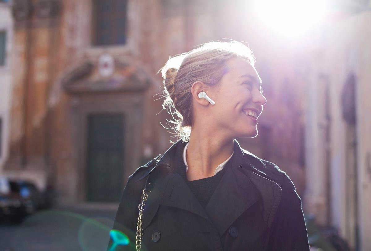 - Technologia True Wireless Stereo: całkowicie bezprzewodowo łączy dwa stereofoniczne zestawy słuchawkowe Bluetooth