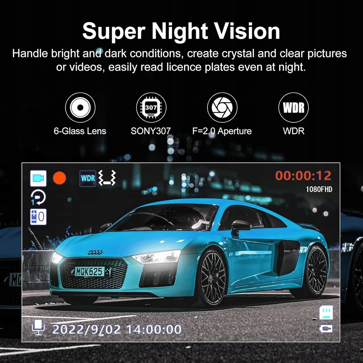 ✅ Nagrywanie automatyczne i w pętli – kamera włącza się wraz z uruchomieniem auta, nadpisując starsze pliki dla optymalizacji miejsca.