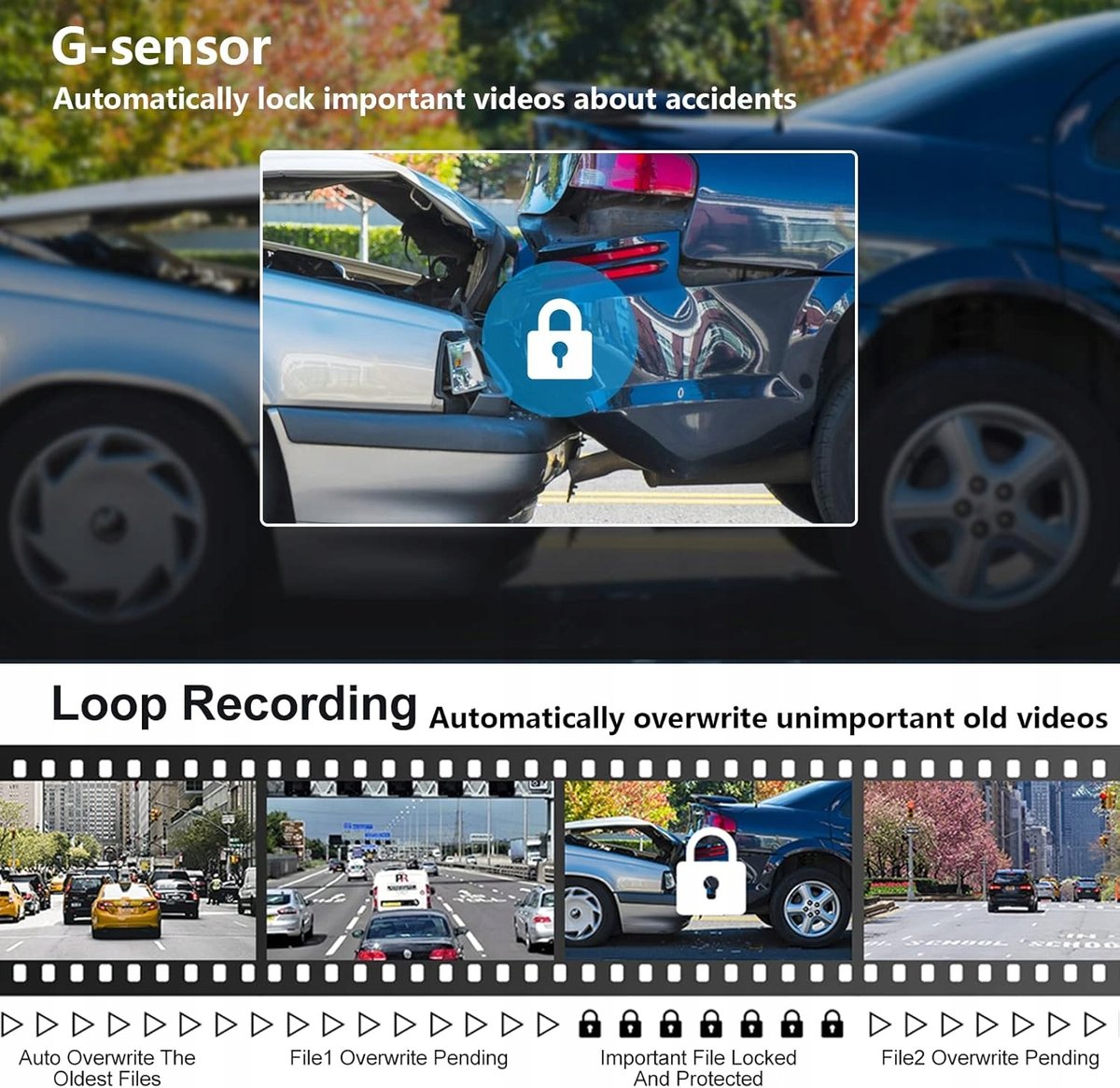 ✅ Sensor G + blokada awaryjna – chroni ważne nagrania przy gwałtownych zdarzeniach; możliwość manualnego zabezpieczenia kluczowych filmów.
