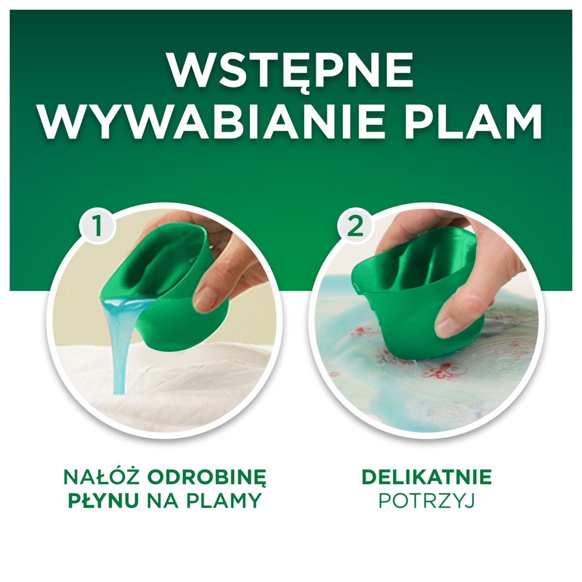 Nałożyć odrobinę płynu bezpośrednio na plamę