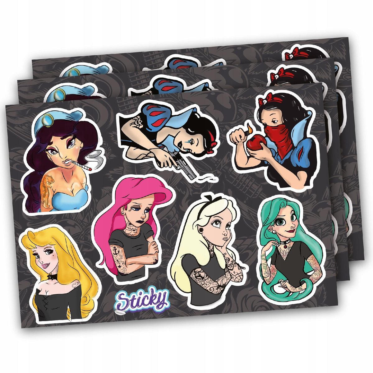 Jesteś fanem filmów animowanych o księżniczkach? Chciałbyś zobaczyć swoje ulubione bohaterki w nowoczesnej i niepokornej wersji? Dzięki naszemu wyjątkowemu arkuszowi naklejek to możliwe! Śnieżka, Śpiąca Królewna, Alicja z Krainy Czarów – bez względu na to, którą wybierzesz, każda uczyni Twój świat cudownie zakręconym!