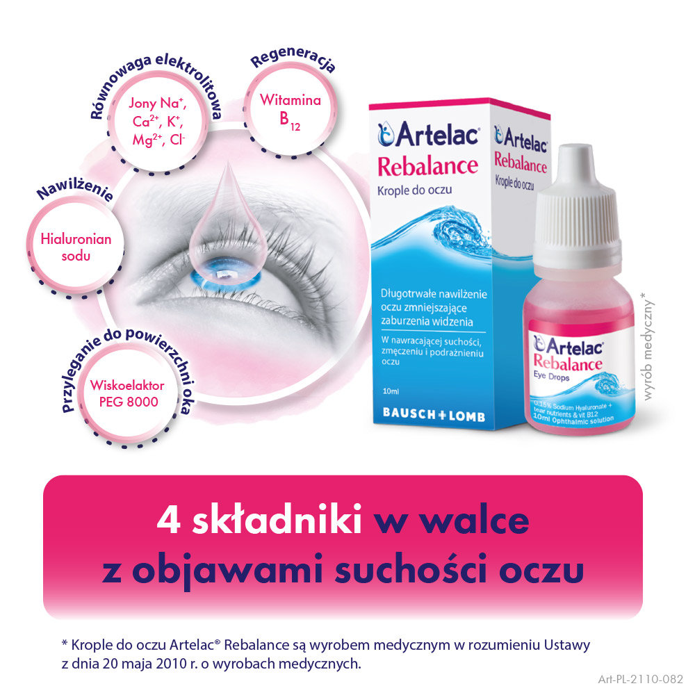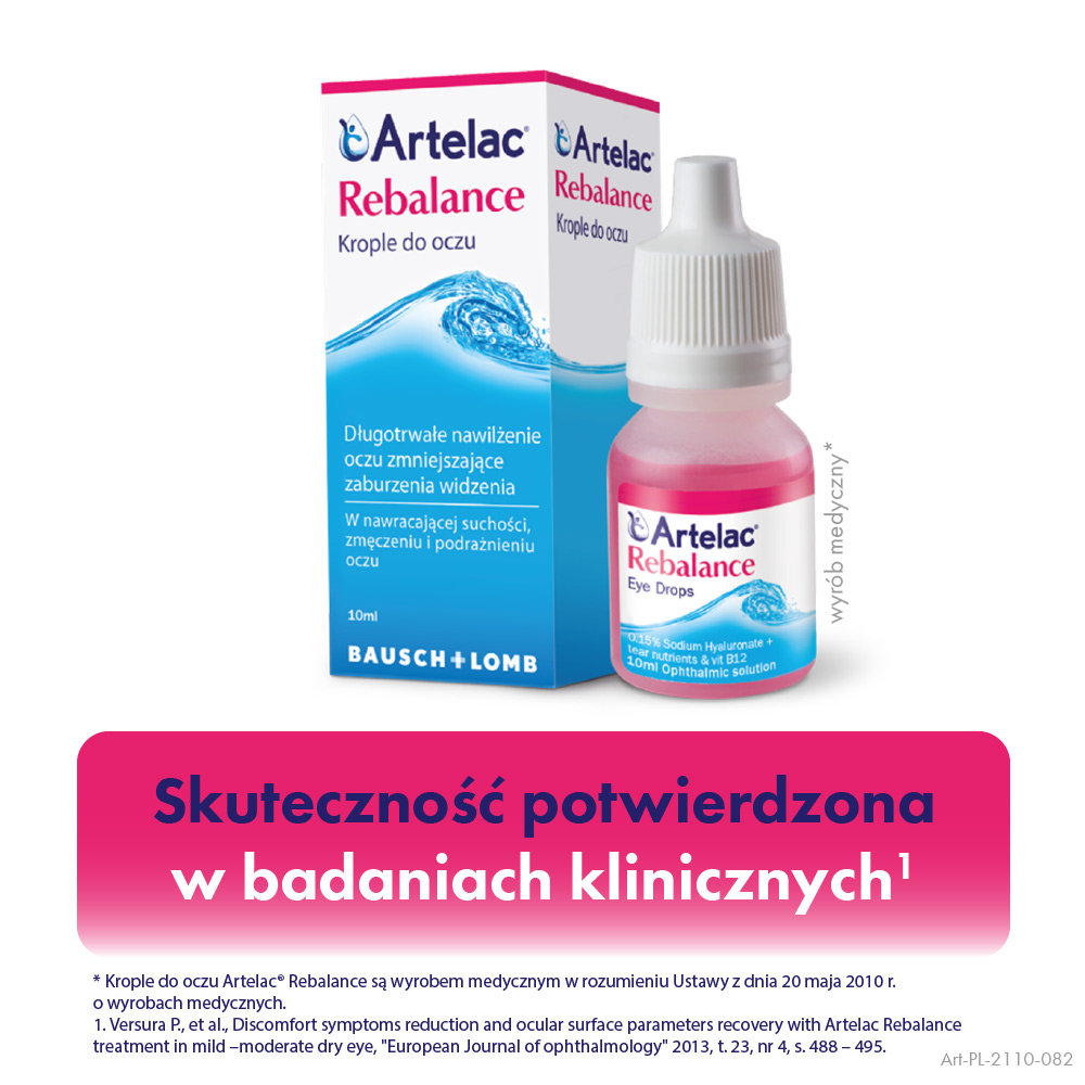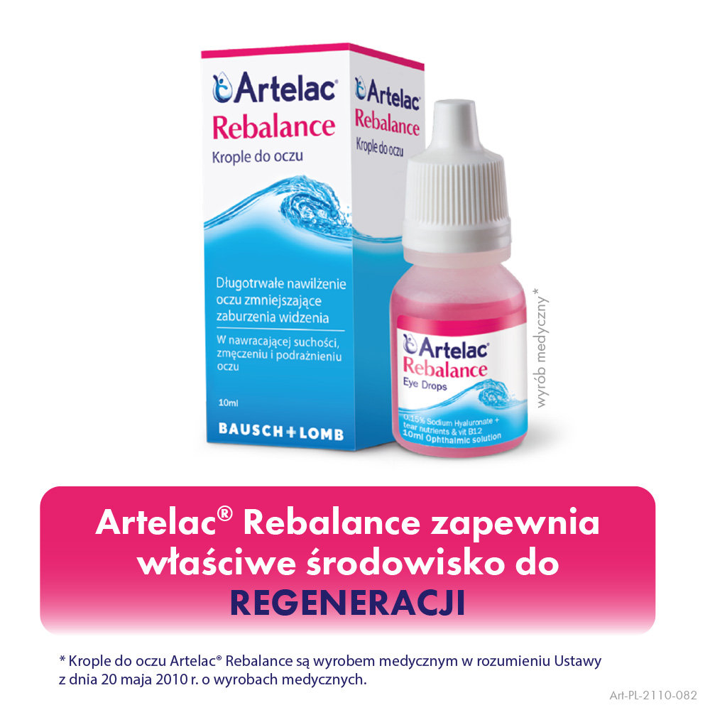 Artelac Rebalance to doskonale skomponowany wieloskładnikowy produkt, który przynosi długotrwałą ulgę i zapewnia ochronę suchym oczom w przewlekłym zaburzeniu wydzielania łez.