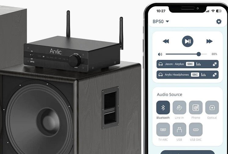 Wielofunkcyjność i Wydajność: Arylic BP50 obsługuje różne kodeki Bluetooth i umożliwia podłączenie do 2 urządzeń nadawczych jednocześnie, zapewniając niespotykaną wcześniej elastyczność i wydajność.