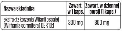 ekstrakt z korzenia Witanii ospałej (Withania somnifera) DER 10:1, składnik kapsułki (żelatyna – składnik otoczki)