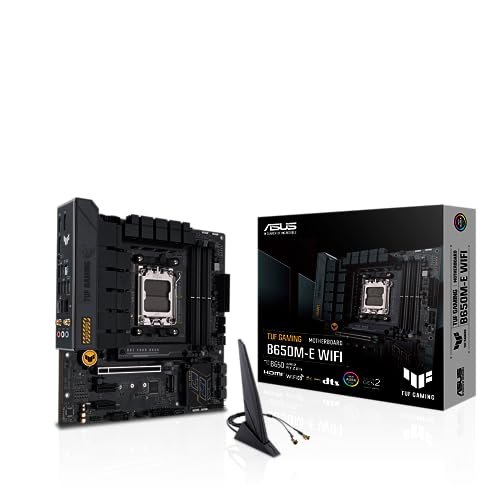 ASUS TUF GAMING B650M-E WIFI (gniazdo AM5/B650/DDR5/S-ATA 6 Gb/s/Micro ATX)Ta płyta główna, wykorzystująca komponenty klasy wojskowej, ulepszone rozwiązanie zasilania i kompleksowy system chłodzenia,
