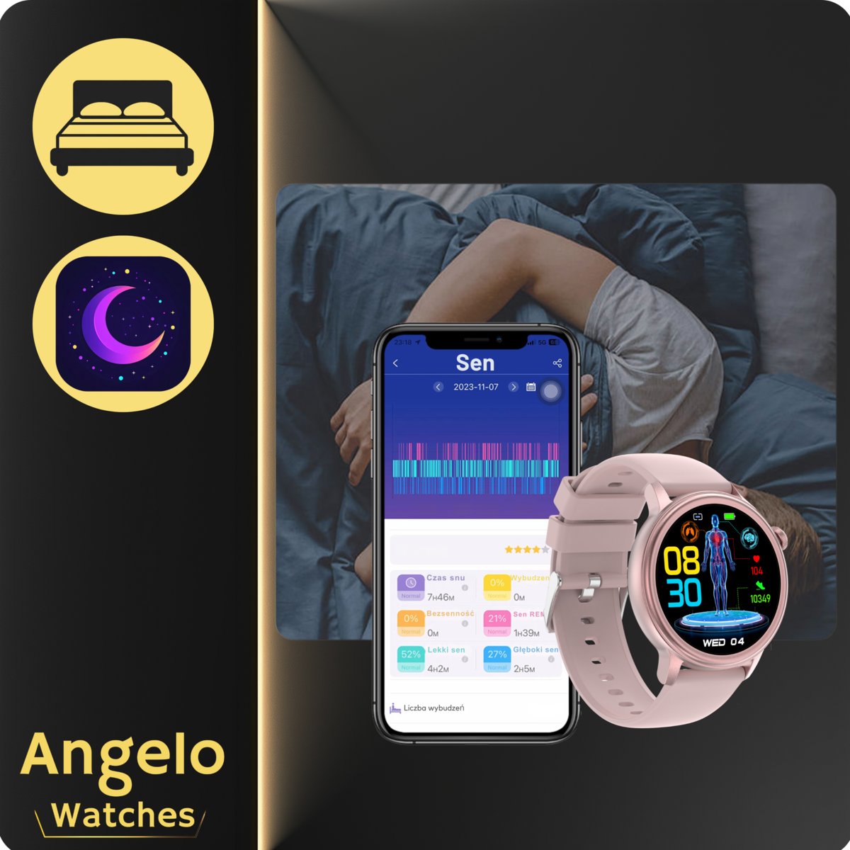 ✅ Precyzyjna analiza faz snu: Dzięki akcelerometrowi i czujnikowi tętna, smartwatch śledzi fazy snu, rozróżniając lekki sen, głęboki sen oraz fazę REM.